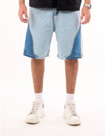 Comfortable and trendy two-tone unisex denim shorts are ideal for warm weather.